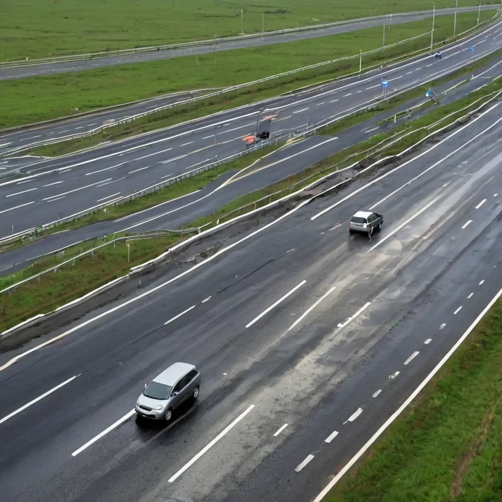- Сильные ливни и наводнения: ухудшение видимости и скольжение на влажной дороге, размыв дорожного покрытия.